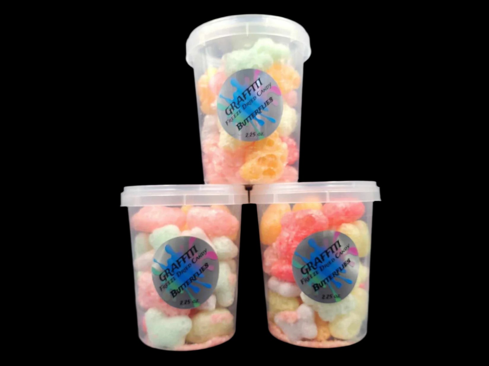 Our Butterflies Freeze Dried Candy takes gummy Butterflies and makes them crispy and crunchy!